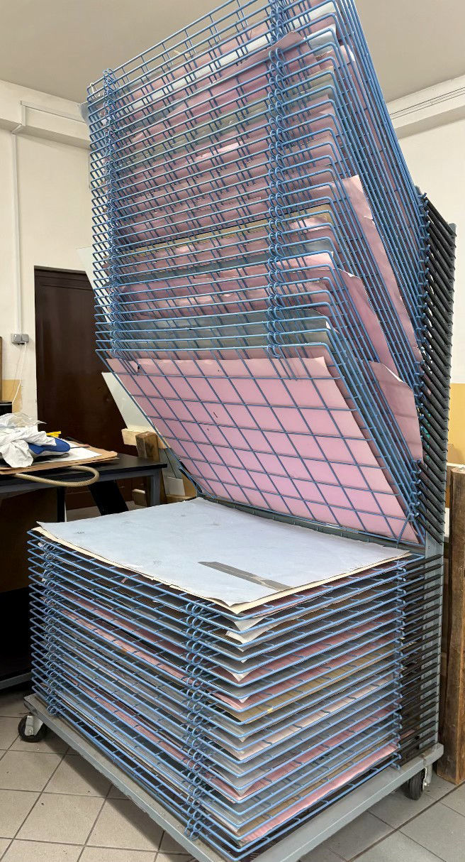 Poleg stroja pride nekaj orodij, nekaj je še čistil, barv, masivno stojalo, računalnik z original Rasterlink 6plus ter mrežo za odlaganje tiskancev.